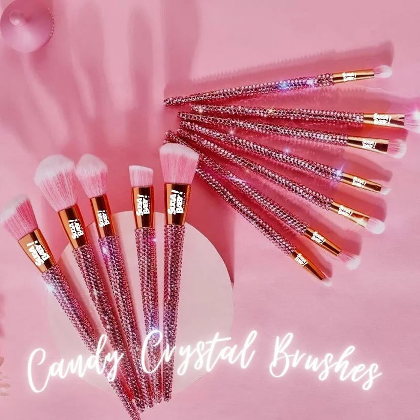 Set features every tool you need for a full-face look. Includes 5 face brushes and 7 eye brushes. Made with plush synthetic bristles and thousands of shimmering crystals.